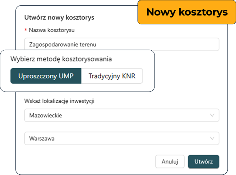 ➕ Kliknij „Nowy kosztorys” i wybierz jedną z dwóch metod: