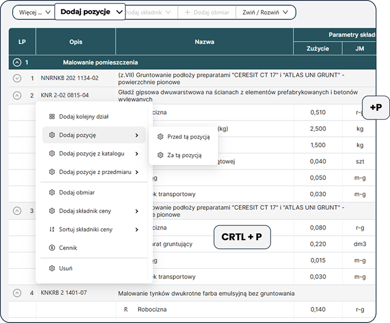 Wprowadź własną pozycję kosztorysową szybko i intuicyjnie.