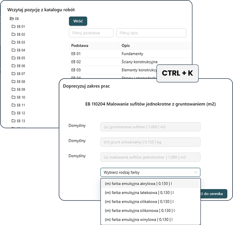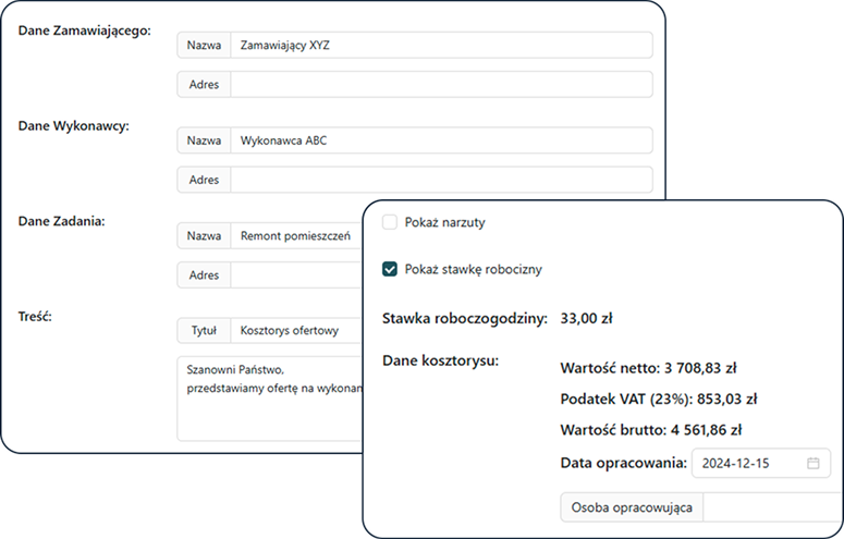 Dzięki przejrzystemu eksportowi oszczędzasz czas i masz pewność, że Twoja dokumentacja wygląda profesjonalnie – gotowa do oferty lub wydruku.📁 Import i eksport kosztorysów